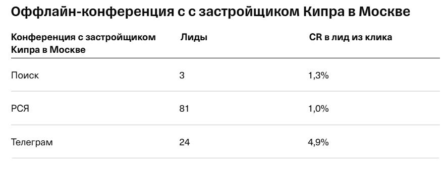 Благодаря этим изменениям мы привлекли более 50 регистраций на конференцию. Основные конверсии пришли из РСЯ (86%), а также из Telegram (8%) и Поиска (5%).