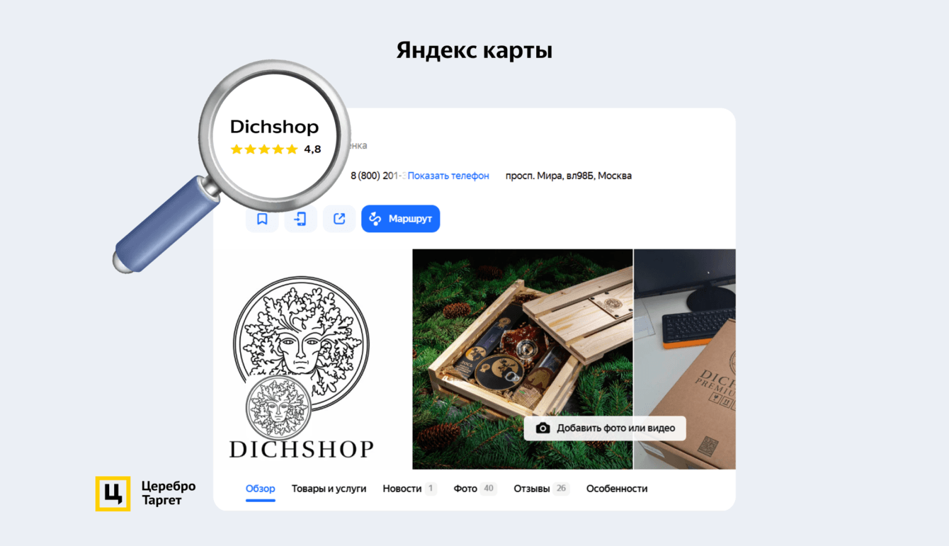 Для анализа использовали Яндекс Карты, Яндекс Маркет, OZON и Flowwow. В карточке на Яндекс Картах 26 отзывов и 40 оценок. Средний рейтинг — 4,8.