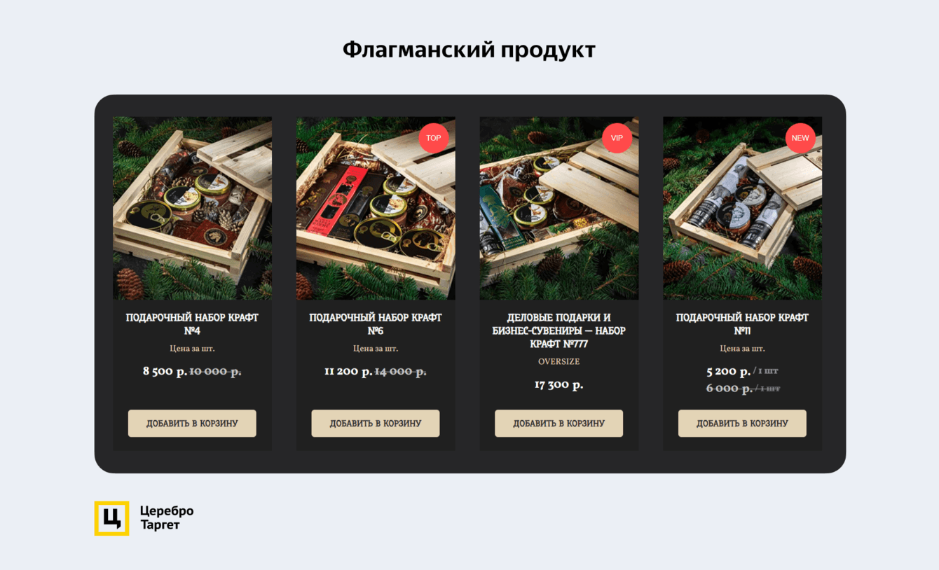 — Реклама должна крутиться на подарочные наборы, которые стоят выше 5 000 руб. Это позволит привлекать продажи в рамках KPI.