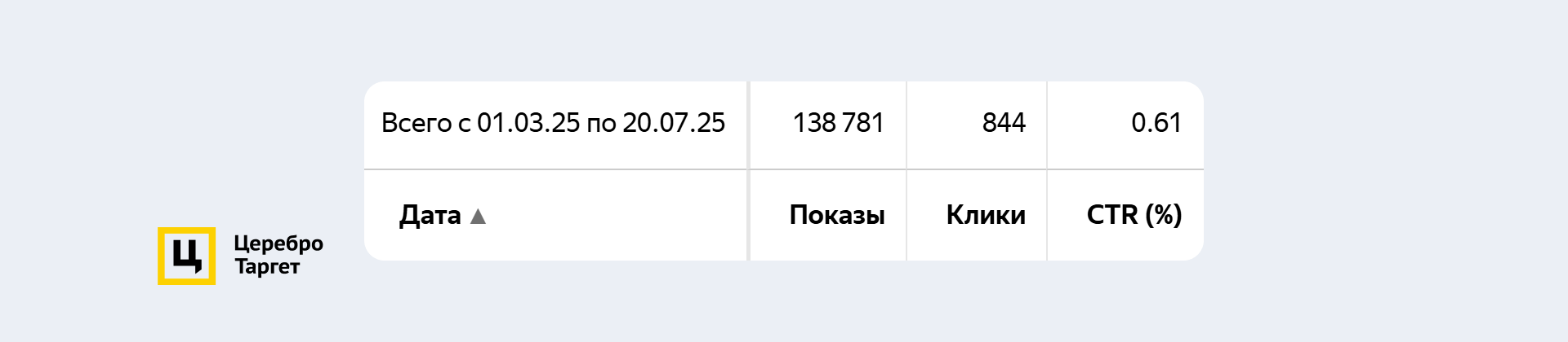 За период теста реклама привлекла 1 заявку и 3 клика по номеру телефона.