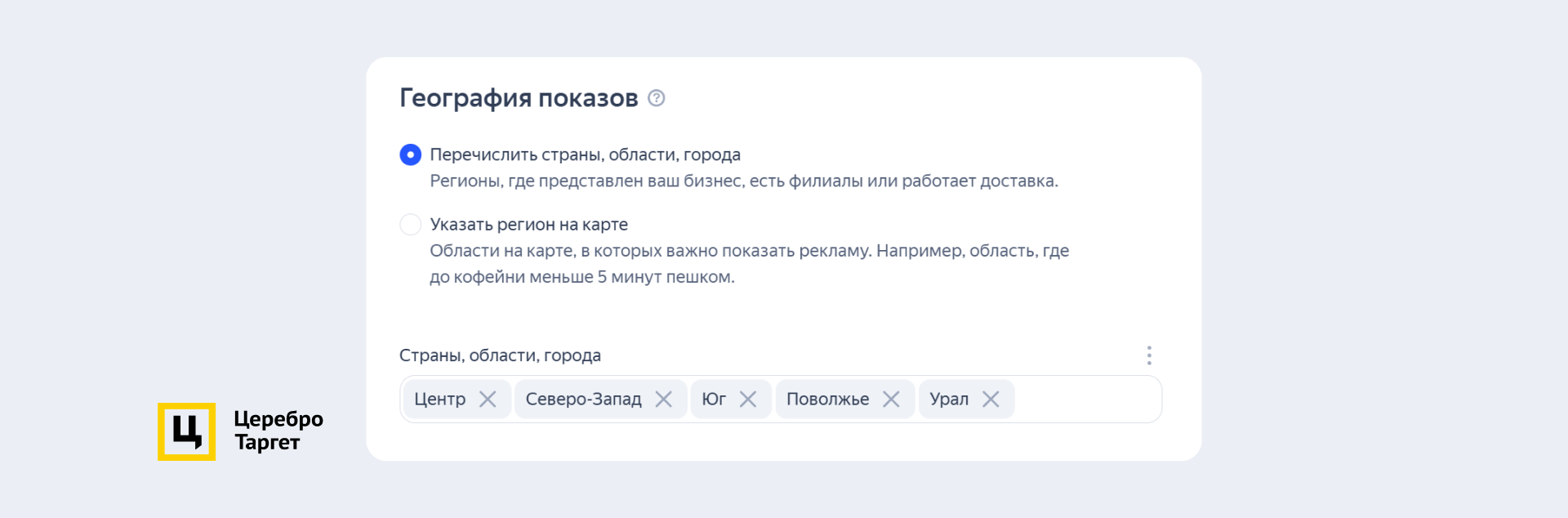 По просьбе клиента из показов убрали Дальний Восток и Сибирь, так как реклама для этих направлений нерентабельна из-за больших затрат на логистику.