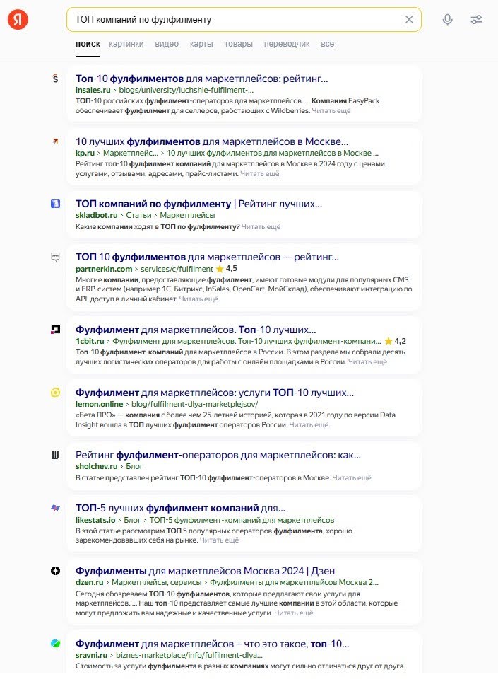 Задачу усложняло и то, что сами пользователи тоже иногда путались в поисковых запросах. Например, не видели различий между рейтингом карточки и рейтингом продавца, неправильно трактовали определение процента выкупа и так далее. Мы подробно разбирали эти нюансы и объясняли их простыми словами, чтобы облегчить жизнь селлерам. Кстати, мы одними из первых опубликовали подробное определение фулфилмента и долгое время занимали с этой статьей хорошие позиции в выдаче.