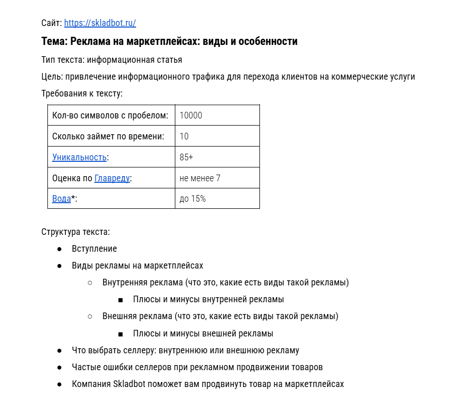 Работа над публикациями строилась по четкой схеме. Сначала наши SEO-специалисты готовили задание: технические требования к статье, структура текста, ключевые запросы и LSI-фразы и так далее.