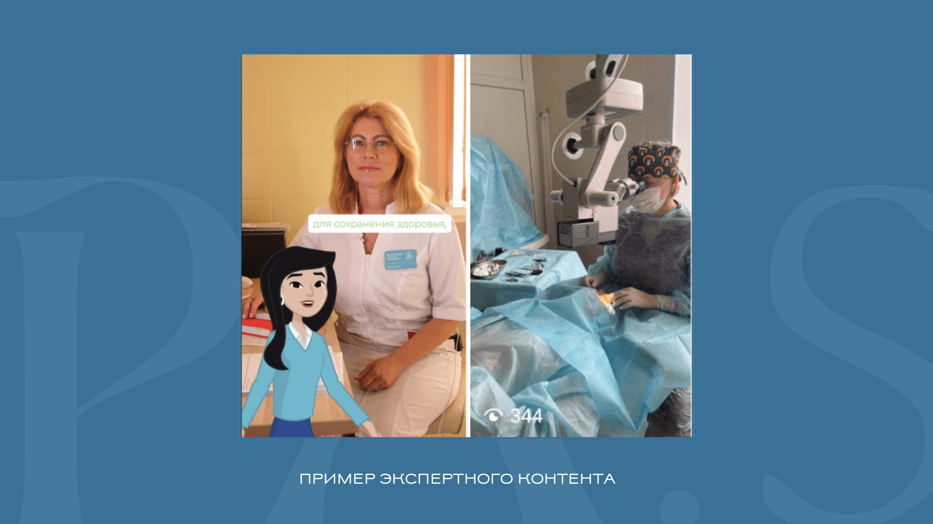 ➜ Экспертный контент (видео в процессе работы, разборы случаев, транслирующие опыт и экспертизу врачей)
