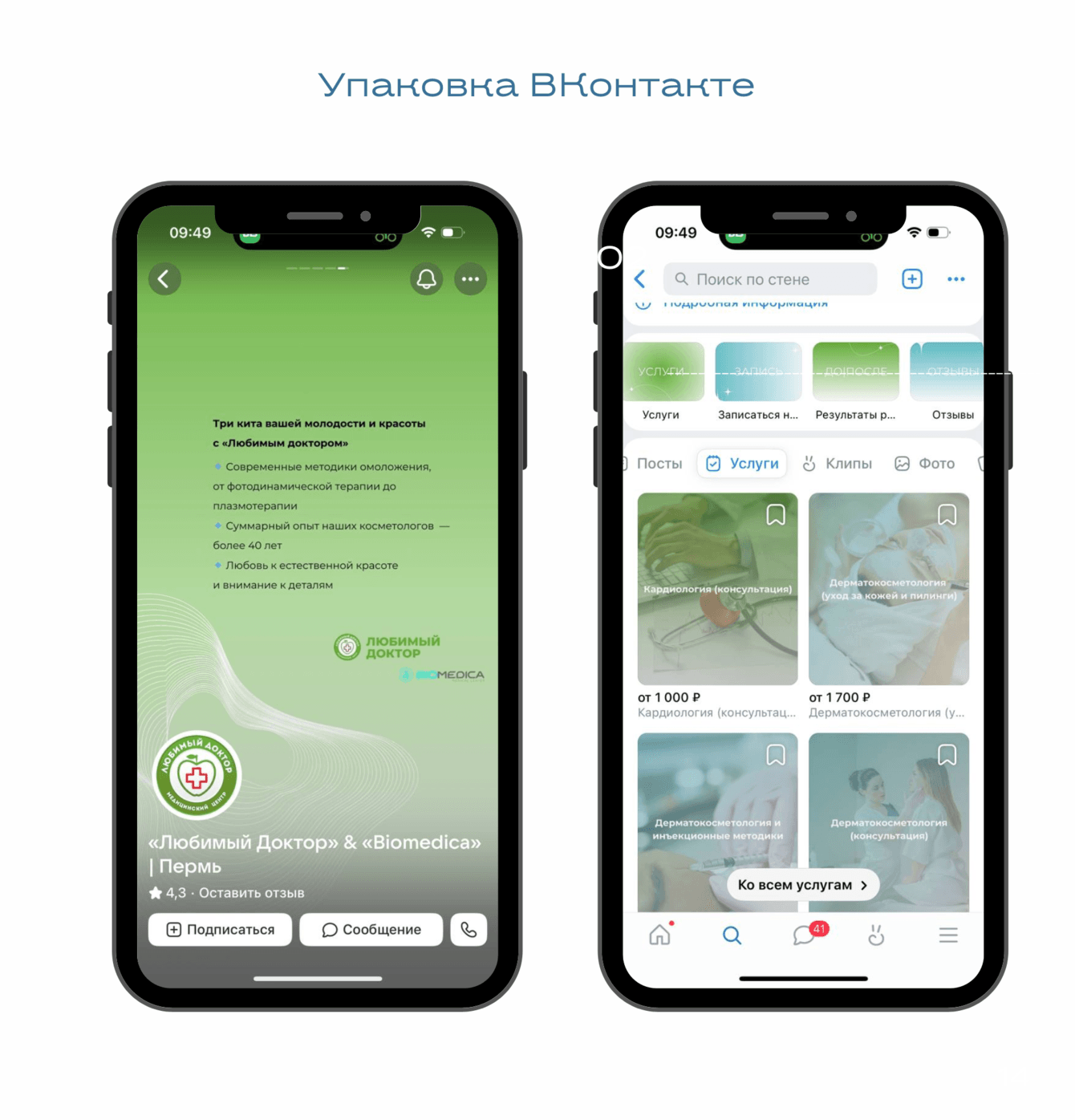 ✓ активно продвигать такие направления, как косметология, физиотерапия и реабилитация, офтальмология (основной запрос клиента), но не забывать и про другие услуги