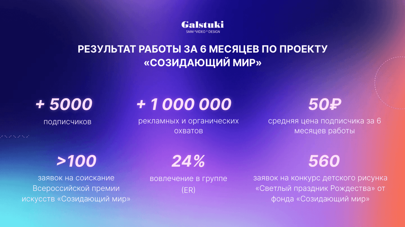 Цели поставленные на 2023 год были достигнуты. В данный момент мы продолжаем работу по этому проекту. Цель на 2024 год набрать 10 000 целевых подписчиков и при этом сохранить высокий уровень вовлечения.