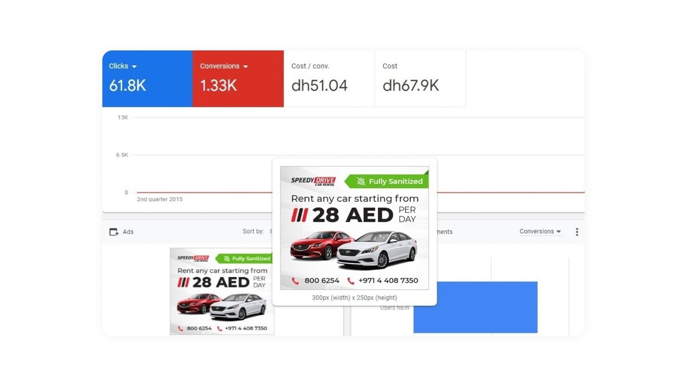 1. Google Ads. Были выбраны все фразы, содержащие слова car, cheap, rent, rental, low cost, monthly, economy, hire, lowest. Добавлено 700+ минус слов. Тестировали общие запросы rent a car, car rental и прочее. Стоимость за конверсию была в полтора раза больше. Наблюдалось скликивание. Даже подключение сервиса Click Cease не помогло.
