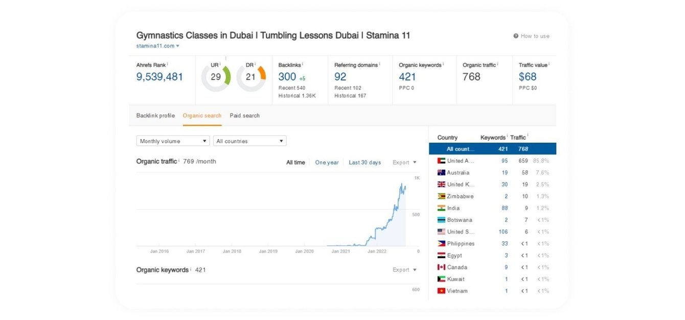 Клиент — большая спортивная школа в Дубае для взрослых и детей, где проводятся занятия гимнастикой, йогой, танцами, каратэ. Находится не в центре города.