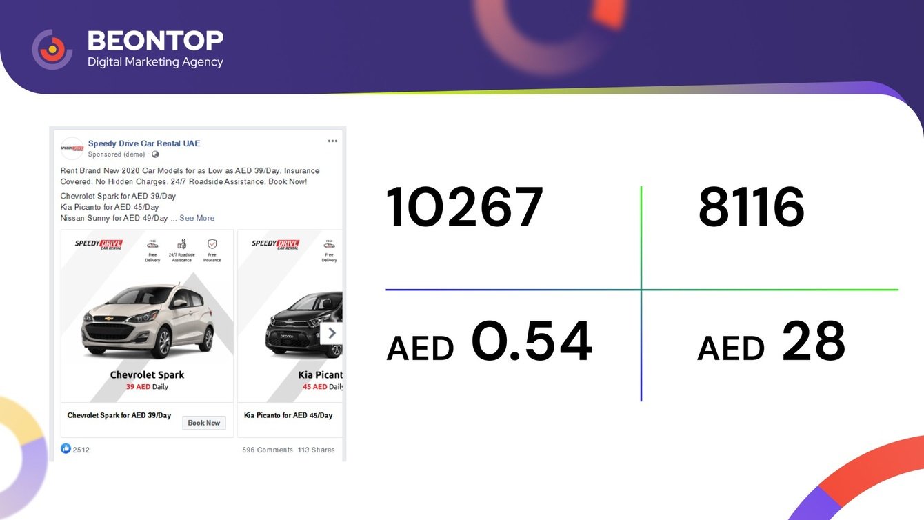 3. SMM — пробовали различные креативы, разные дизайны и в итоге получилась такие результаты: стоимость лида 28 дирхам, что неплохо для этого бизнеса.