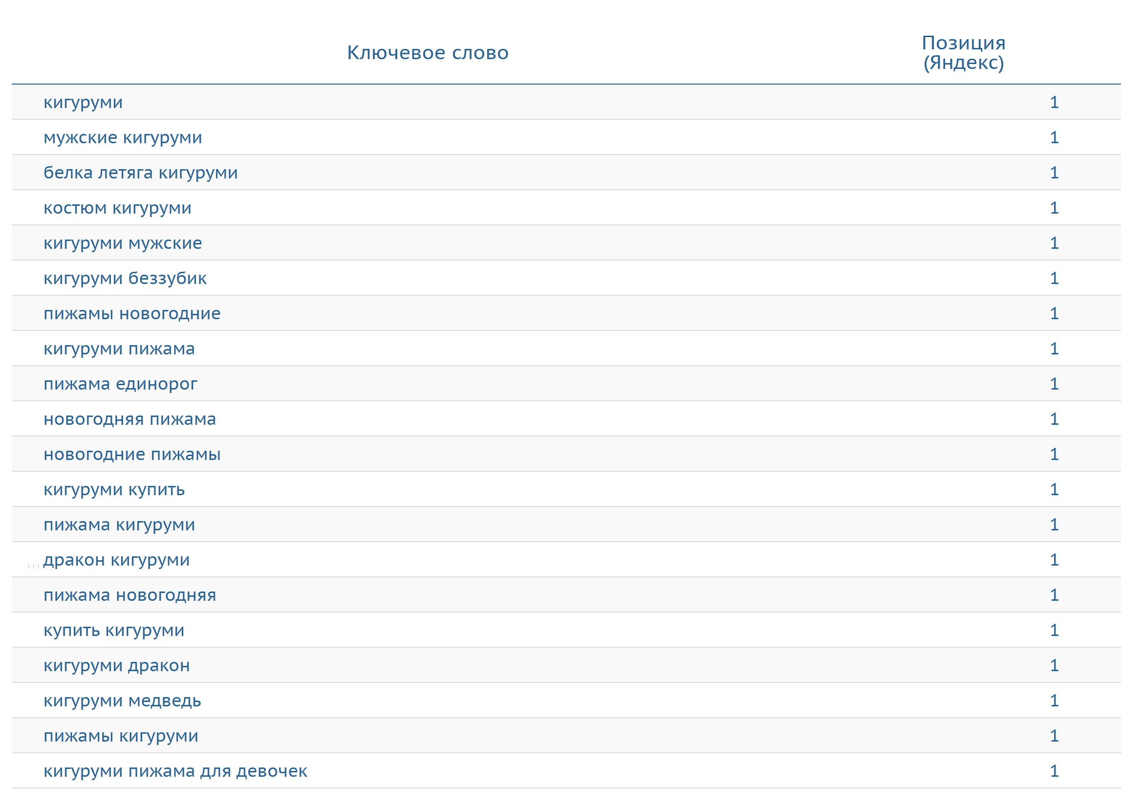Улучшение видимости в поисковой выдаче: Удержание и улучшение позиций в ТОП-10 Google и Яндекс по ключевым запросам, таким как “купить пижаму Беларусь”, “кигуруми Минск”, “пижамы женские Минск”, на 80%.