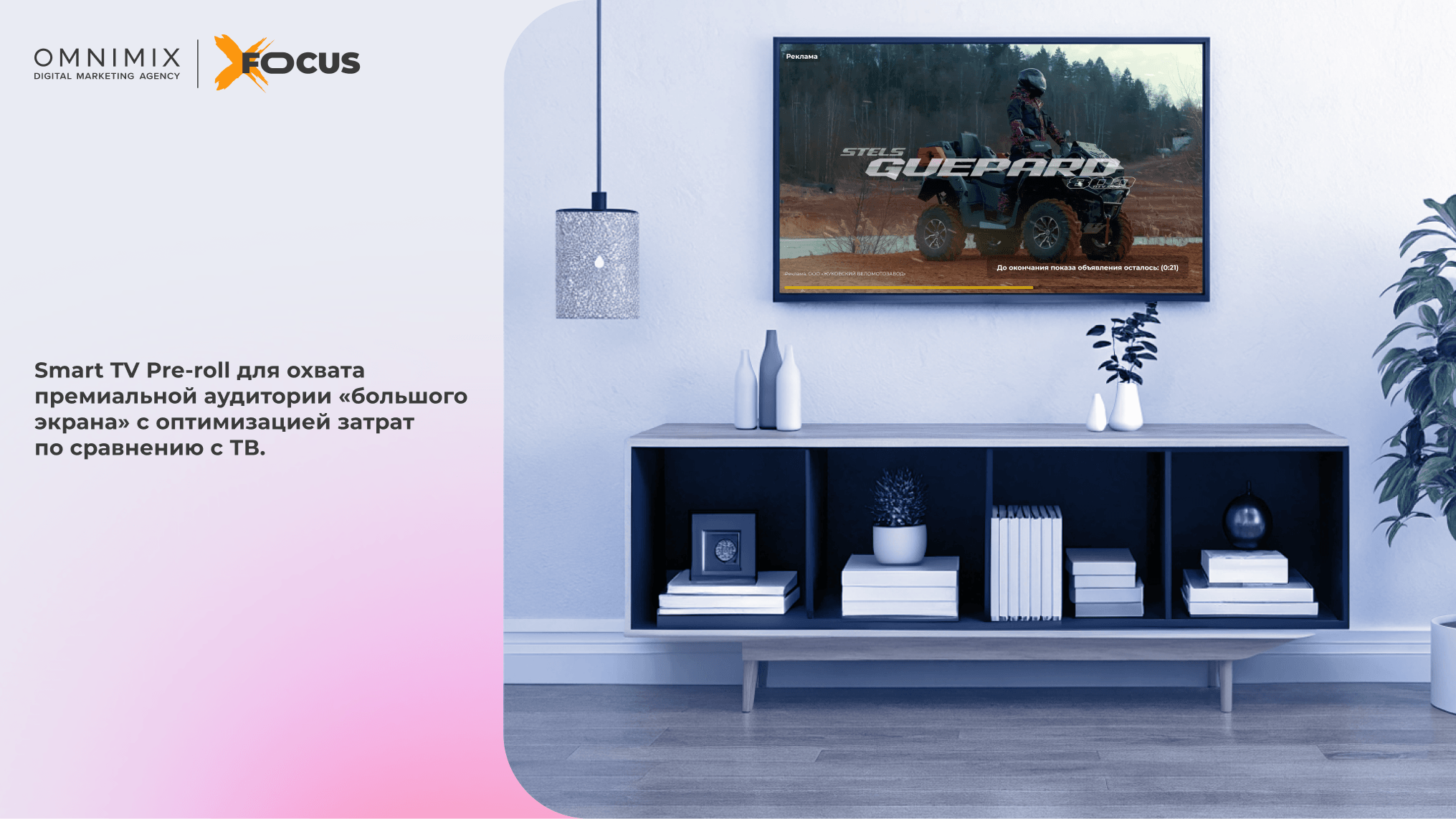 Smart TV Pre-roll для охвата премиальной аудитории «большого экрана» с оптимизацией бюджетных затрат по сравнению с традиционным телевещанием.