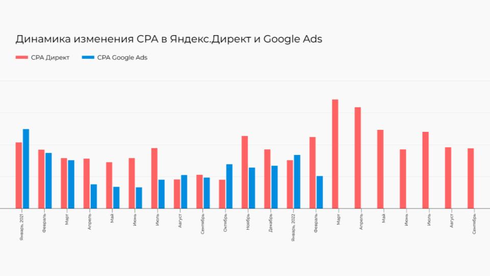 «После того, как Google Ads ушёл из России все ожидаемо обратили внимание на Яндекс — это привело к росту конкуренции, увеличению бюджетов и, разумеется, рекламных ставок. Об этом мы уже рассказывали в нашем летнем исследовании. Рынок меняется очень быстро, время на ожидание нет, и предсказать, какая конкретно ставка будет для нас эффективной и где проходит верхняя допустимая граница стоимости клика попросту невозможно.