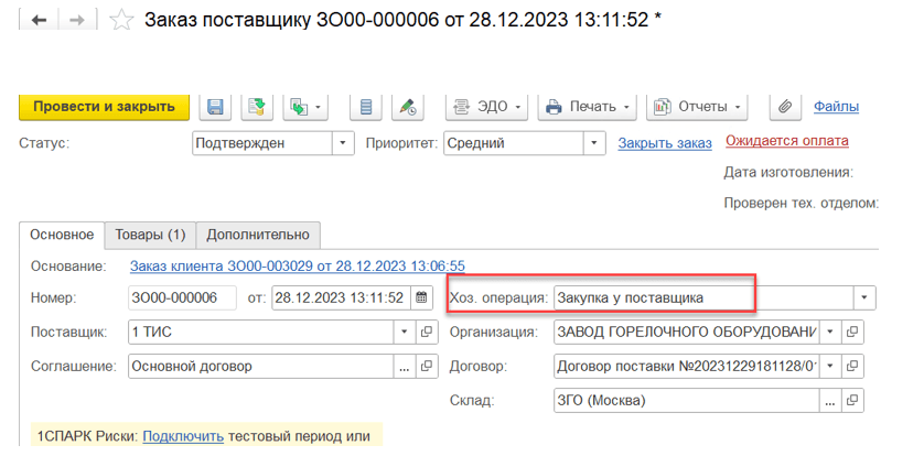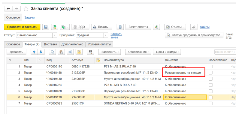 Нужно было проработать бизнес-процесс для схемы “товары в пути”. Пока комплектующие или сами горелки доставляются (особенно из зарубежного офиса) может измениться их стоимость и начнут задваиваться запросы о поставке. В старой версии программы такие товары отражались в доработанном документе «Резервирование товаров» на основании документов «Поступление товаров и услуг». Теперь нужно было отработать эту схему в ERP с обязательным учётом всех проблемных участков.