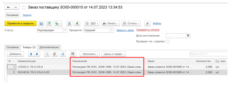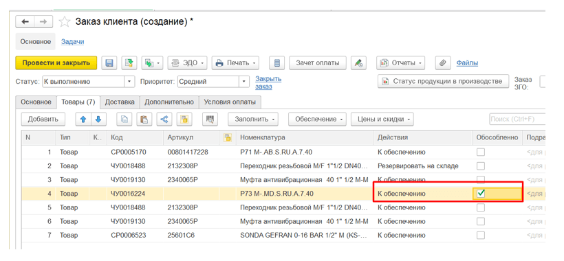 С целью контроля поступающих комплектующих под конкретные заказы, был настроен обособленный учет. Это позволило исключить вероятность конфликта между отделами, когда менеджер мог зарезервировать поступившую под заказ комплектующую и нарушить производственную цепочку.