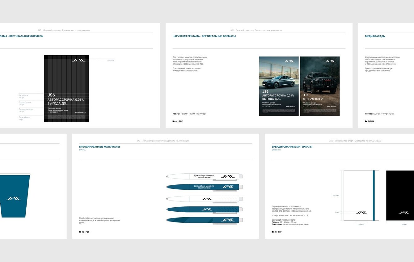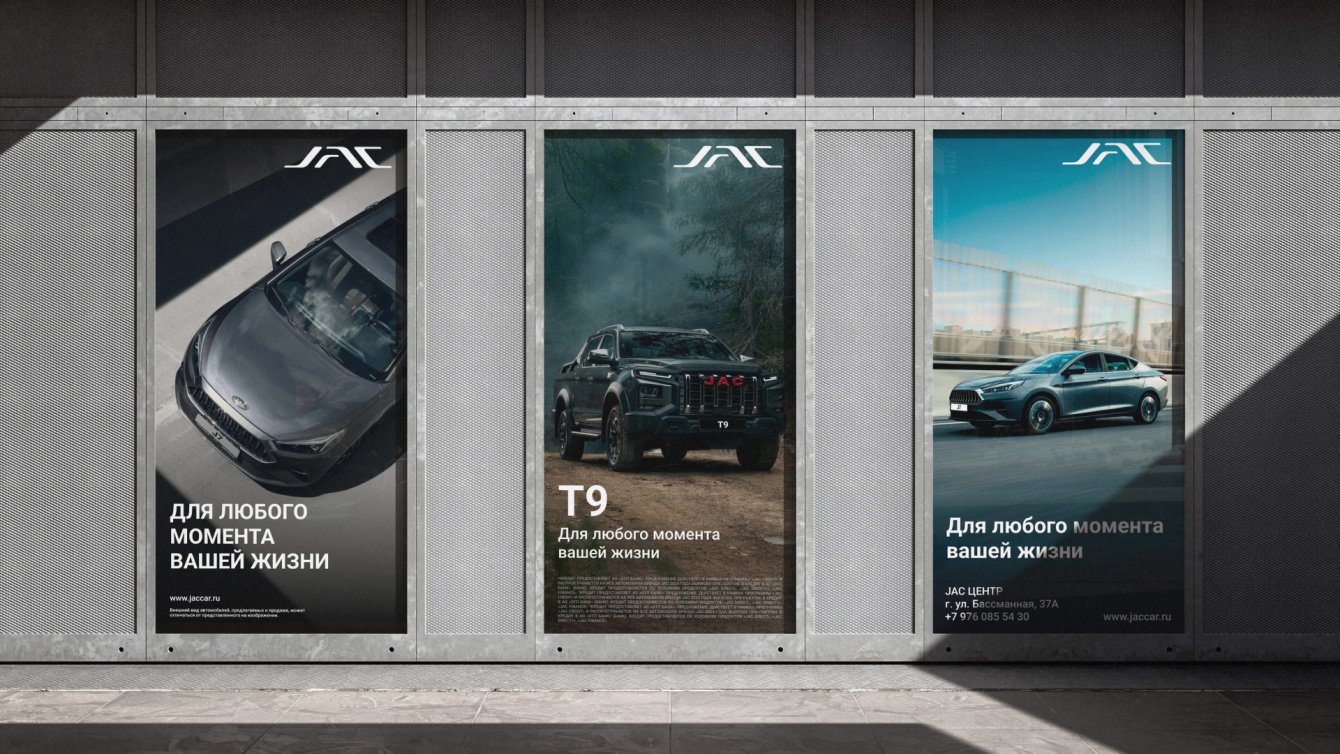 JAC MOTORS — китайский производитель автомобилей с богатой историей и широкой линейкой продукции (от легковых авто до грузовиков), который активно развивается на российском рынке. Клиент обратился к нам с бизнес-задачей — доработать существующий стиль, расширив его возможности, а также разработать новые визуальные материалы, которые бы отражали современный образ бренда.