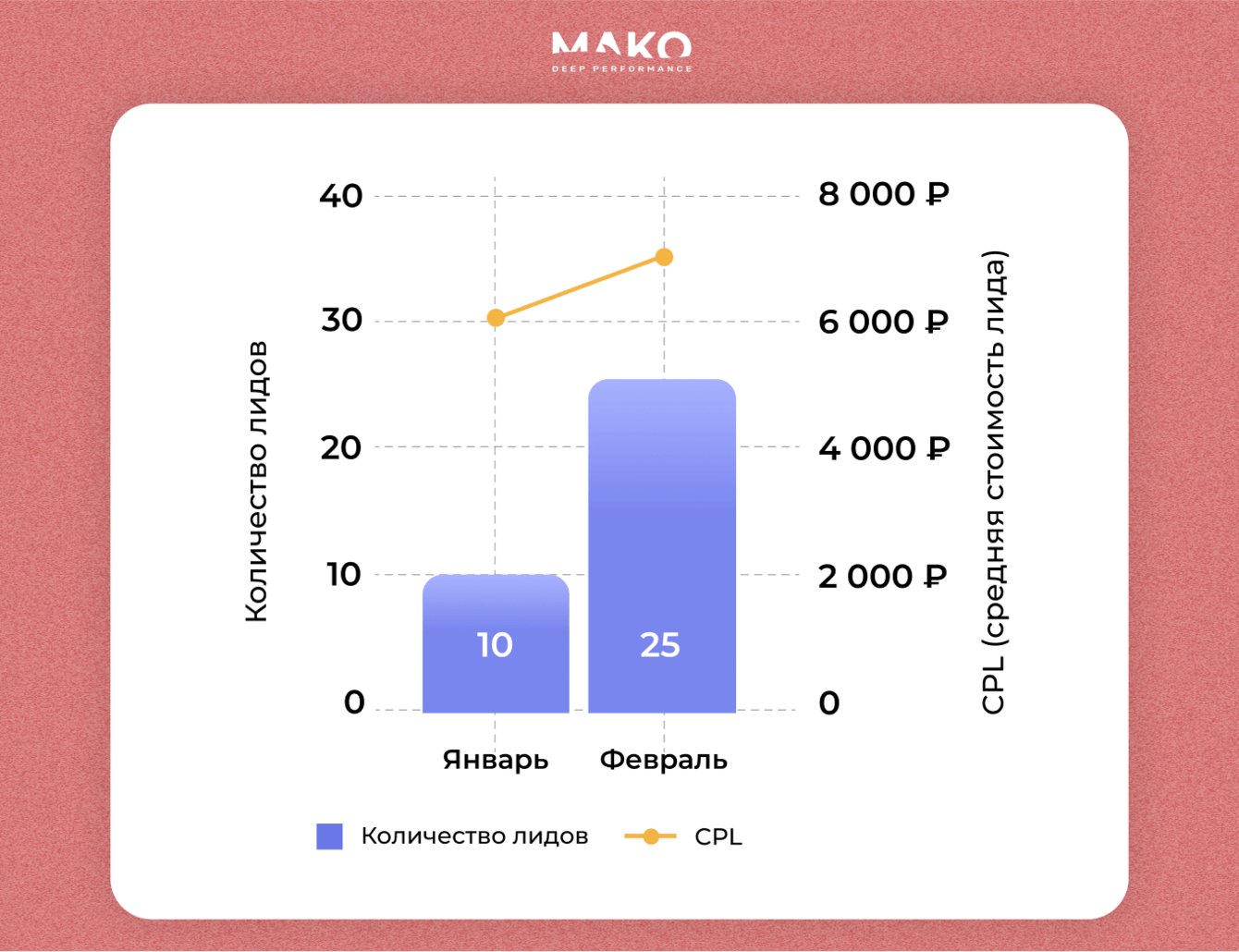 - Цена лида — около 3 000 ₽ (поиск в тот момент — 5 000 ₽ и выше).