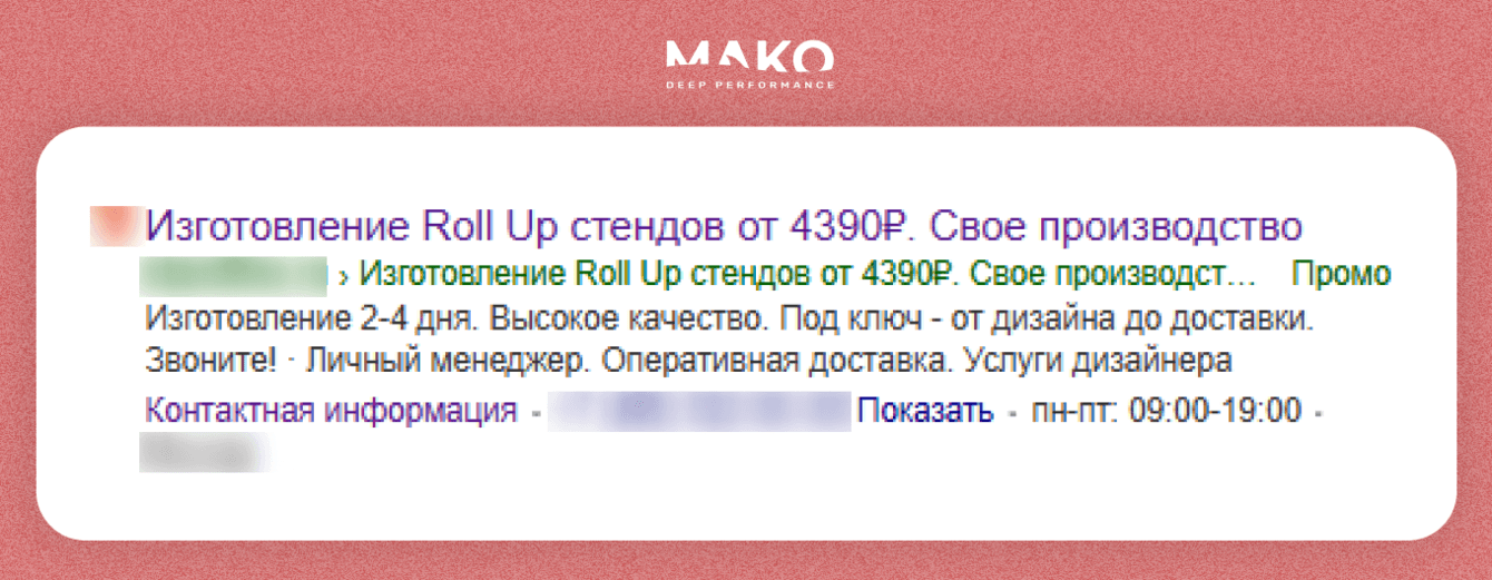 Компания производила и продавала рекламные конструкции: роллапы, стенды, лайтбоксы и т.п. Лиды в отрасли дорогие, а ошибки в рекламе особенно критичны, потому что рынок — узкий, а конкуренция — высокая.