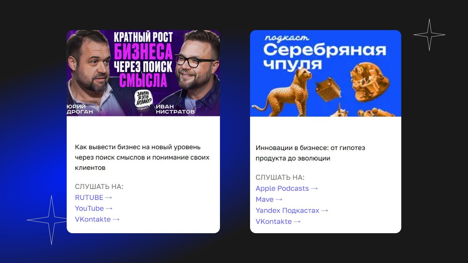 — CEO Юрий Дроган стал гостем подкастов «Зачем я это делаю» и «Серебряная Чпуля» — выпуски с его участием собрали около 30-40 тысяч прослушиваний.