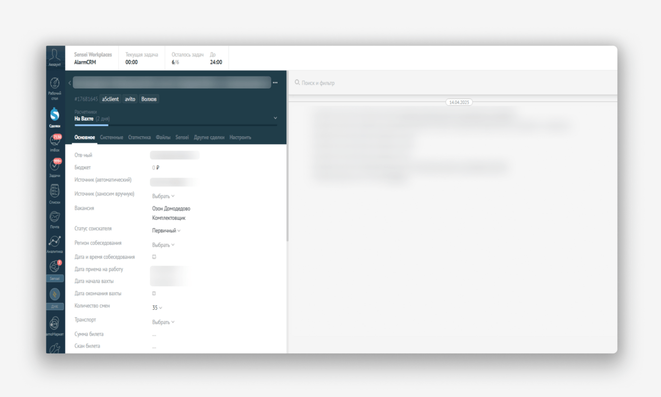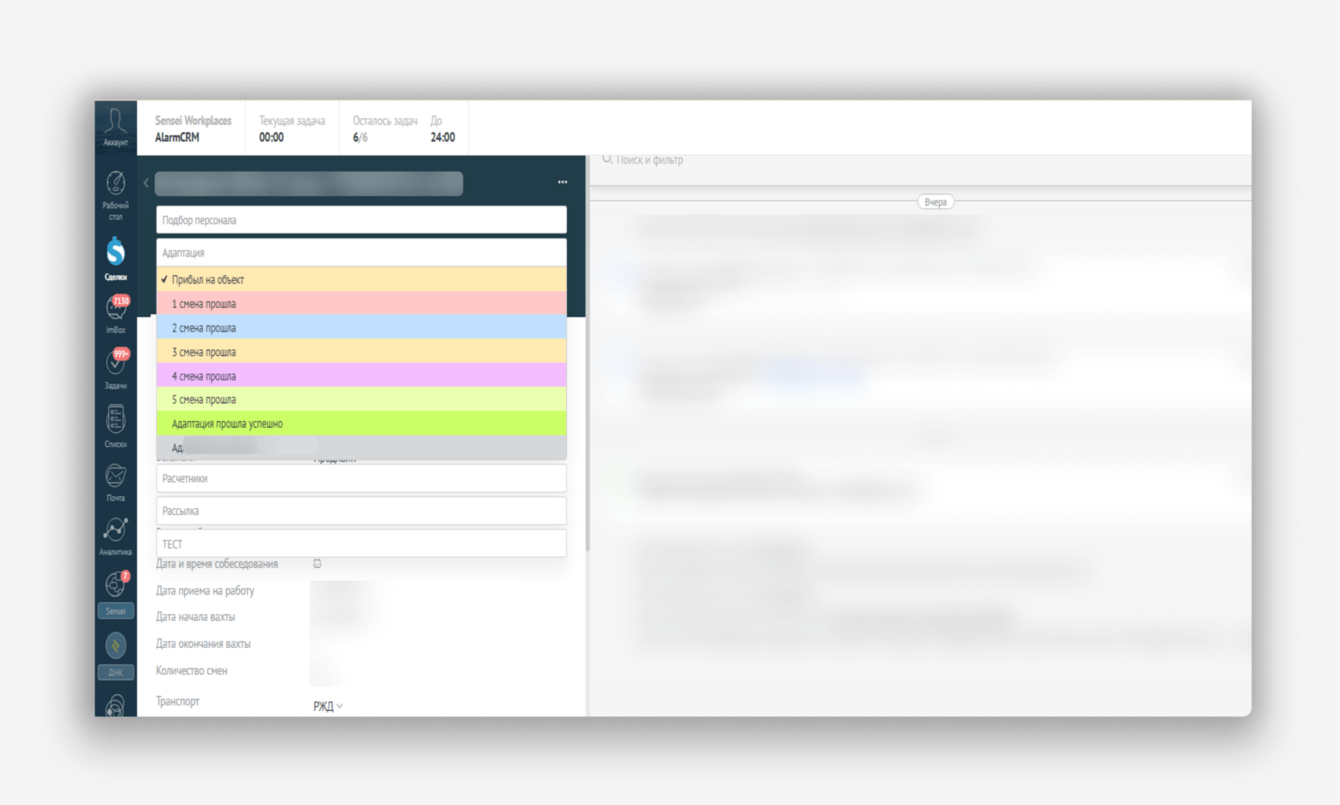 Ранее менеджеры работали хаотично, часто забывая заполнять важные поля в сделках. Теперь, благодаря настроенным воронкам продаж («Подбор персонала», «Адаптация» и «Расчетники») с обязательными полями, вся информация о кандидатах структурирована и доступна на каждом этапе.