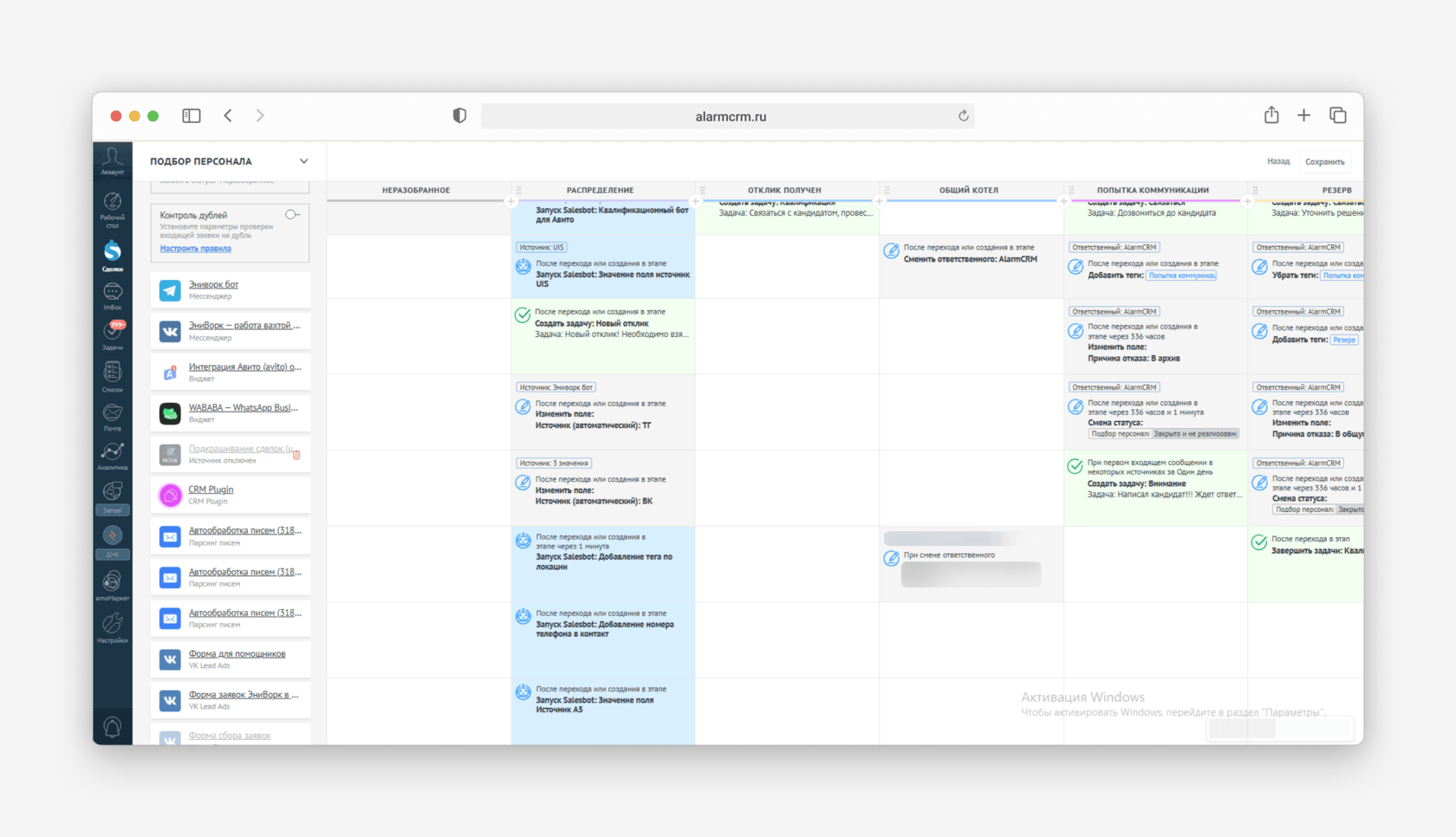 Ранее менеджеры работали хаотично, часто забывая заполнять важные поля в сделках. Теперь, благодаря настроенным воронкам продаж («Подбор персонала», «Адаптация» и «Расчетники») с обязательными полями, вся информация о кандидатах структурирована и доступна на каждом этапе.