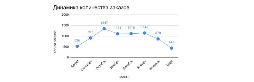 В среднем при подключении продвижения мы получали 1 026 заказов в месяц.