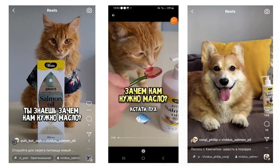 Блог полностью посвящен питомцам. Реклама была подготовлена нативно в формате Reels.