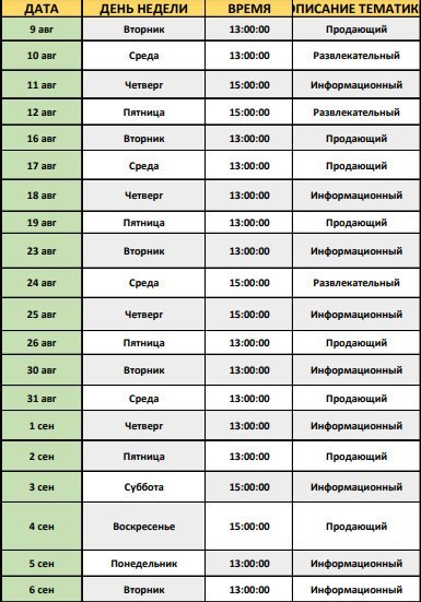 Разработка контент плана с направленность публикаций продающих 20%, вовлекающих или информационных 60% 20% в процентном соотношении)
