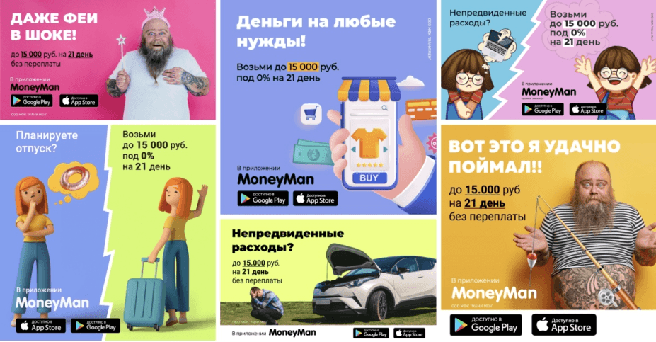 3. Использование баннеров и видео с основным УТП сервиса, со сроком и ставкой предоставления займа. Применили все возможные форматы, которые загружались вручную, для наилучшего контроля эффективности РК.