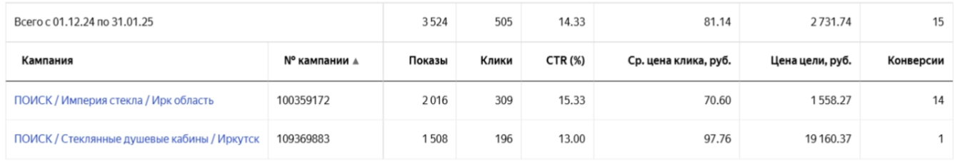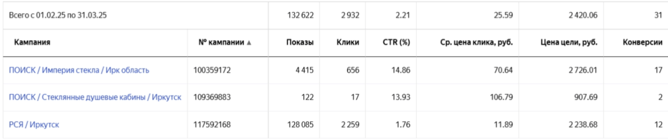 Ниже для сравнения два периода: декабрь 2024-январь 2025, когда используем только кампании на Поиске, и февраль-март 2025, когда в дополнение запустили РСЯ.