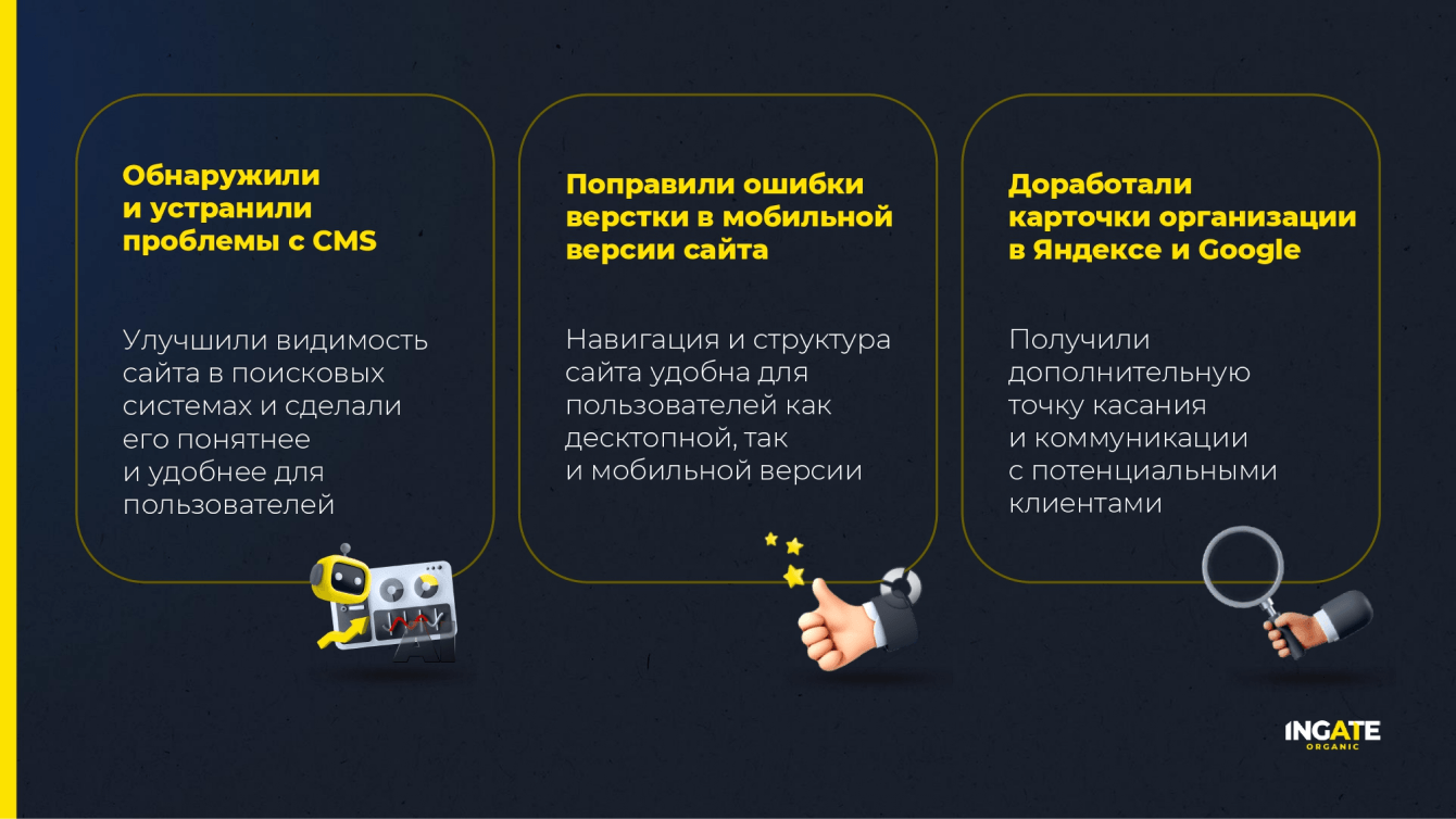 • Оптимизировали структуру сайта и мобильной версии.