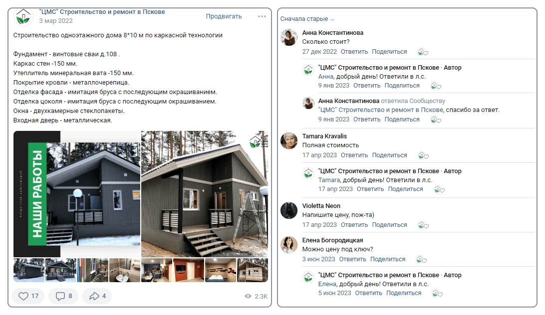 Долгое время клиент не занимался ведением сообщества ВКонтакте: посты публиковались, но не регулярно. Как следствие, охваты и вовлеченность упали. В рамках тестирования специалисты агентства CoffeeStudio предложили запустить клиенту таргетированную рекламу, которая привела в сообщество новых пользователей. Они стали активно комментировать старые посты (опубликован в 2022 году — комментарий из 2023 года) и задавать целевые вопросы в сообщения.