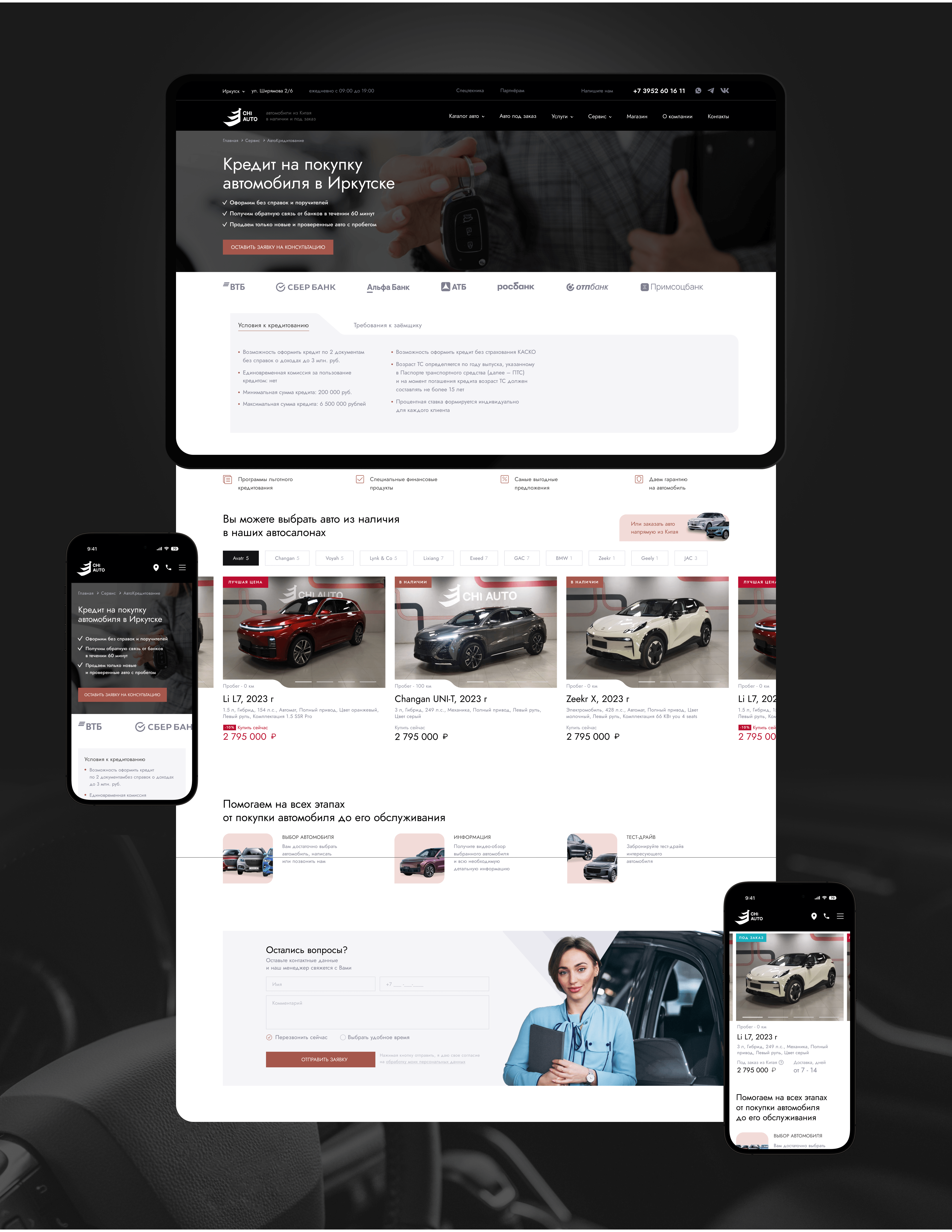 Создать не просто информационный сайт, а рабочий инструмент продаж, который максимально информирует клиентов, закрывает их вопросы без обращения в автосалон, поддерживает два направления бизнеса (продажу авто в наличии и под заказ из Китая), позволяет легко масштабироваться на новые города, включает интернет-магазин автотоваров как дополнительный канал продаж и обеспечивает высокую конверсию при минимальной стоимости лида.