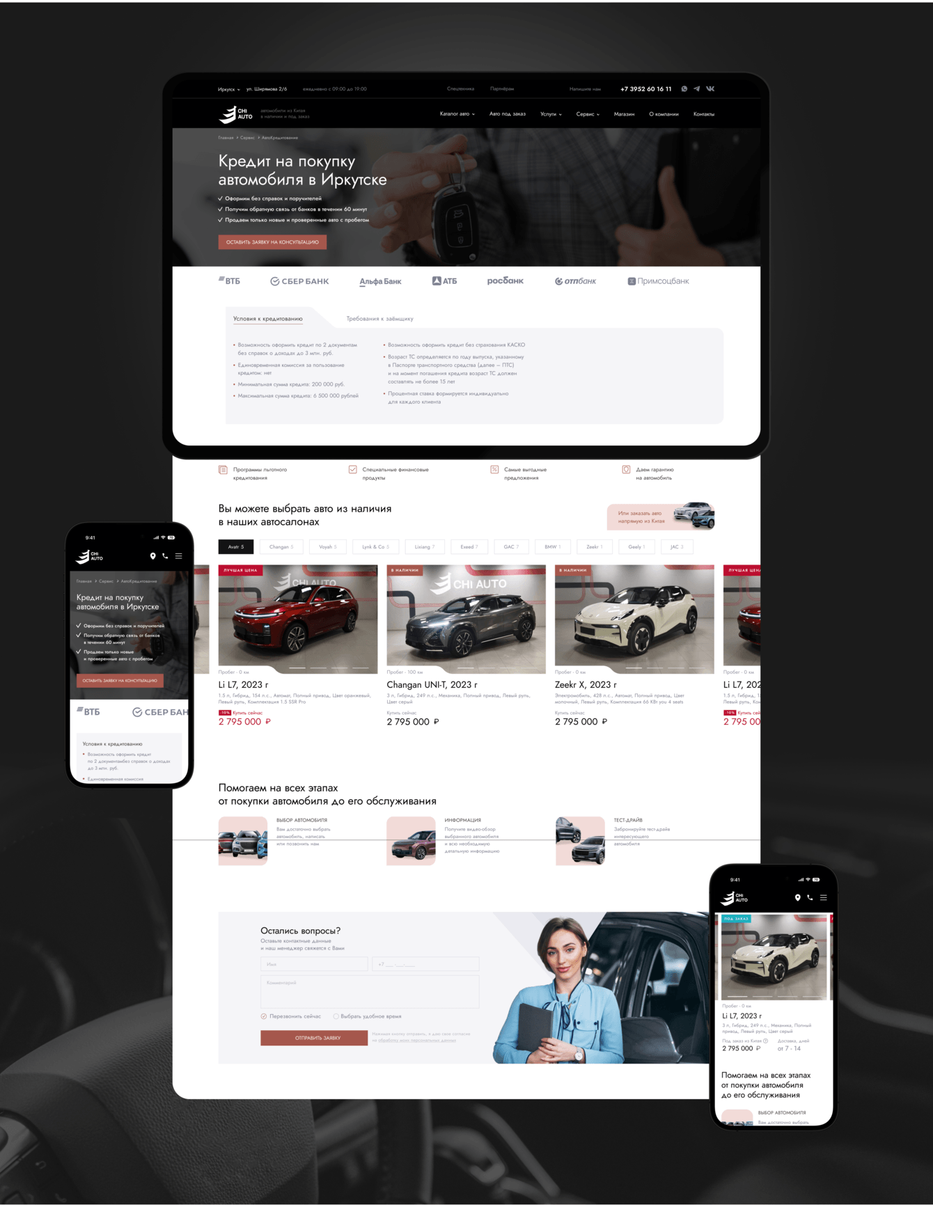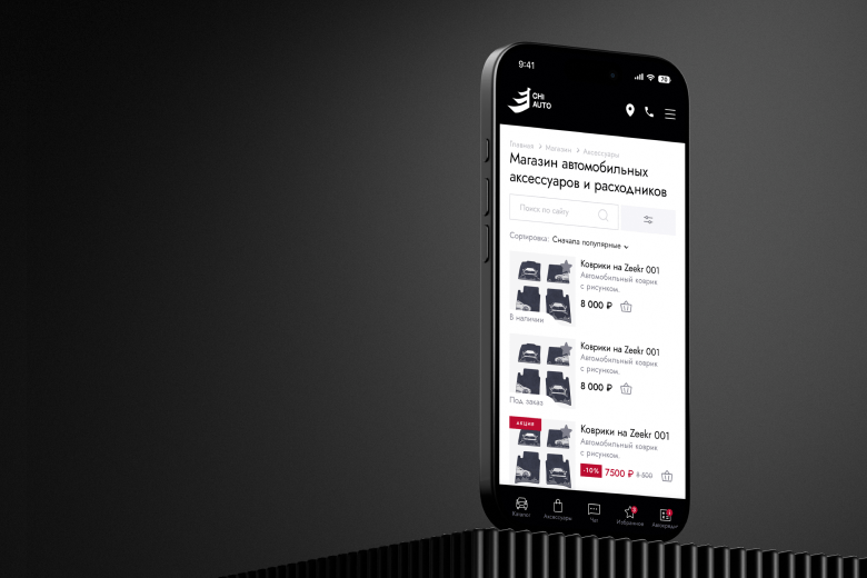 Создали полноценный интернет-магазин с отдельным каталогом автотоваров, строкой поиска, корзиной, онлайн-оплатой и выбором способа доставки. Реализовали автоматическое обновление наличия товаров и добавили калькулятор предварительного расчета кредита. Для повышения конверсии внедрили блок похожих товаров и блок преимуществ продавца.