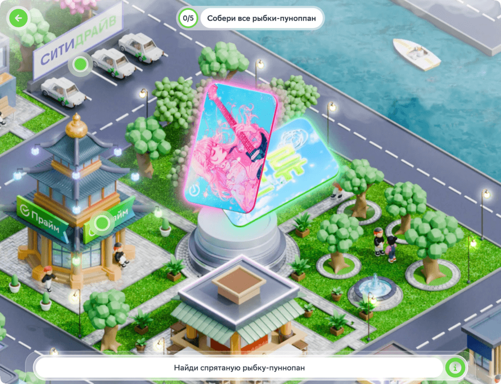 Еще одним элементом кампании стал спецпроект в соцсети «ВКонтакте» — мини-приложение «Карта K-pop». Познавательная игра, в которой пользователи могут исследовать интересные факты о культуре Южной Кореи и собирать спрятанные вафельные рыбки пуноппаны. А еще, прогуливаясь по улочкам интерактивного корейского города, пользователи могут познакомиться с преимуществами молодежной СберКарты.