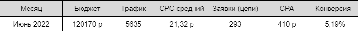 Для сравнения показатели с таргета ВК, который клиент настраивал параллельно с нашей работой:
