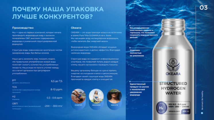 OKEARA — это индонезийский бренд водородной воды, который поставляет продукцию в отели, резорты, общественные пространства, на мероприятия и виллы. В 2023 году компания обратилась к нам с задачей обновить упаковку, чтобы усилить позиции на рынке, сделать бренд более заметным, повысить вовлеченность аудитории и найти формы упаковки, подходящие для масштабирования по всей Индонезии.