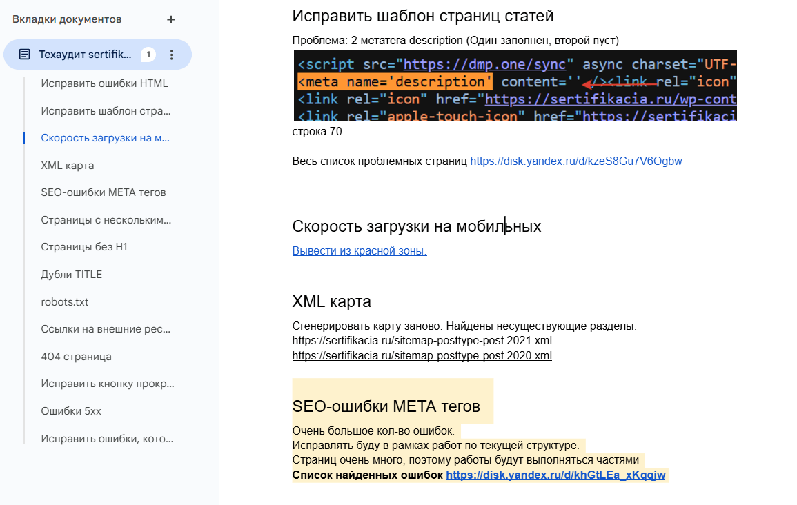 На первом этапе мы провели комплексную техническую проверку сайта, чтобы выявить любые ошибки или недочеты, которые могут негативно влиять на его индексацию и ранжирование в поисковых системах.