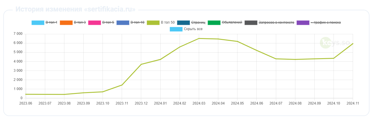 Наши усилия по SEO-оптимизации сайта принесли впечатляющие результаты, которые превзошли все ожидания. За 6 месяцев интенсивной работы мы смогли добиться следующих достижений:
