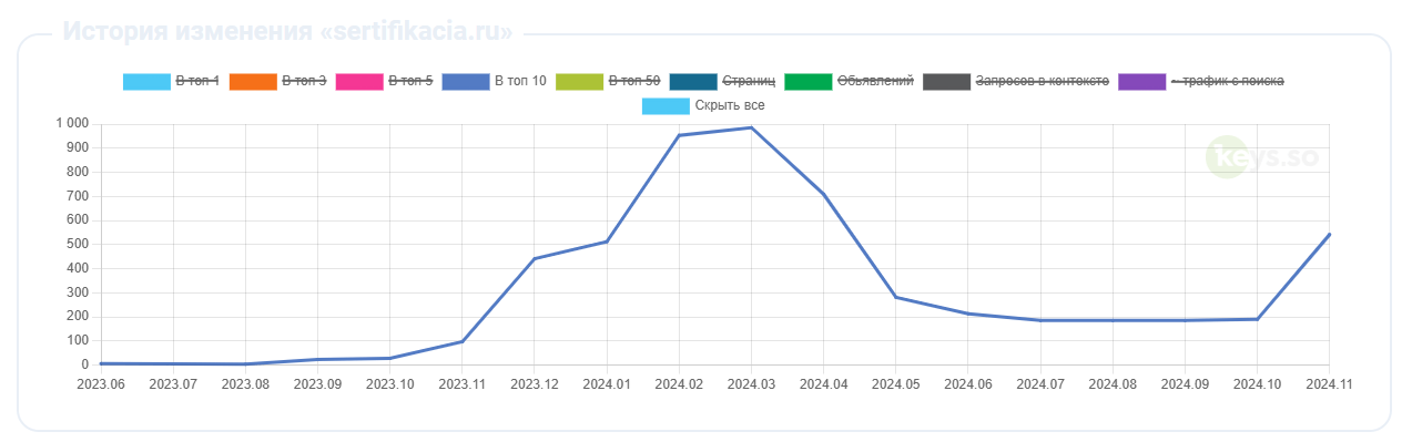 Такая динамика роста свидетельствует о том, что наши усилия по оптимизации структуры, контента и технической составляющей сайта принесли ощутимые результаты и позволили ему значительно улучшить свои позиции в поисковой выдаче Яндекса.