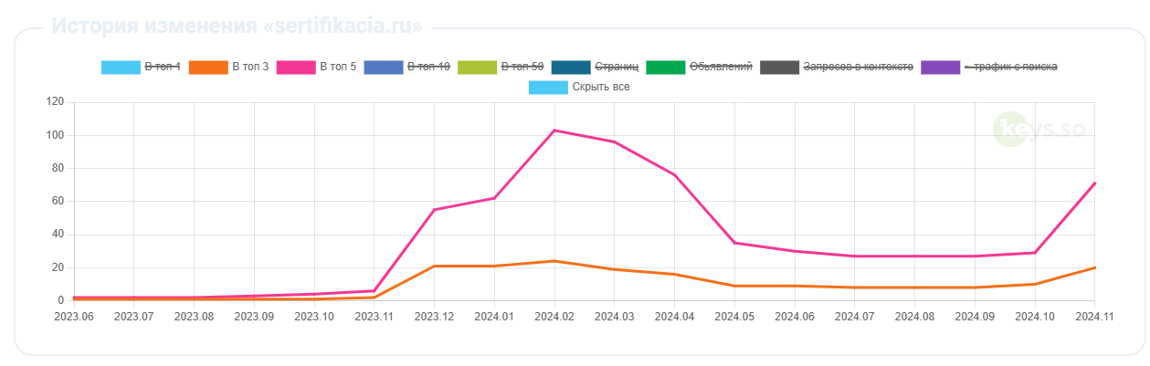 Успешное продвижение сайта по сертификации продукции, которое мы рассмотрели в этом кейсе, наглядно демонстрирует силу грамотного комплексного подхода к SEO-оптимизации. Благодаря тщательному анализу исходной ситуации, устранению критических проблем и целенаправленной работе над структурой, контентом и техническими аспектами, нам удалось добиться впечатляющих результатов.