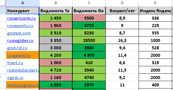 Параллельно с техническим аудитом и анализом структуры сайта мы изучили конкурентов, которые занимают лидирующие позиции по релевантным запросам в сфере сертификации продукции. Это помогло нам лучше понять сильные и слабые стороны нашего сайта, а также выявить возможности для оптимизации.