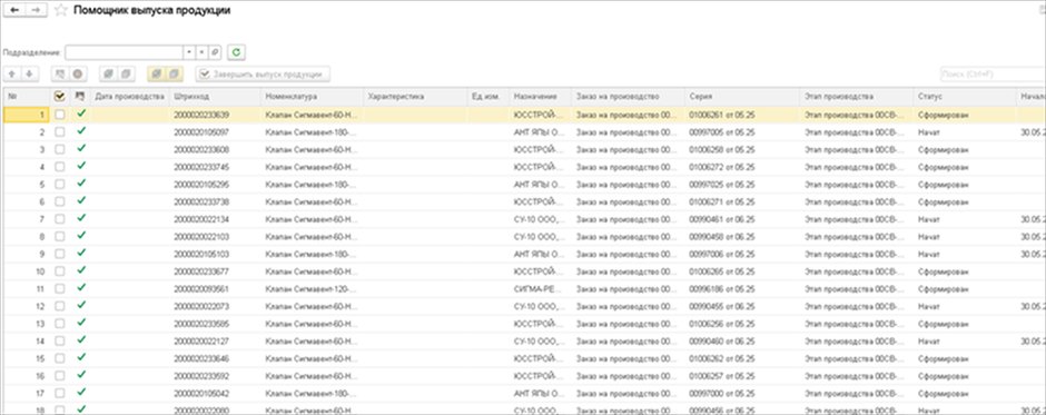 Проект стартовал с переноса данных из УПП. Благодаря детальной проработке и тестированию, переход прошёл почти бесшовно: весь апрель 2025 года клиент полностью отработал в новой системе, оформив выпуск более 36 500 единиц продукции.