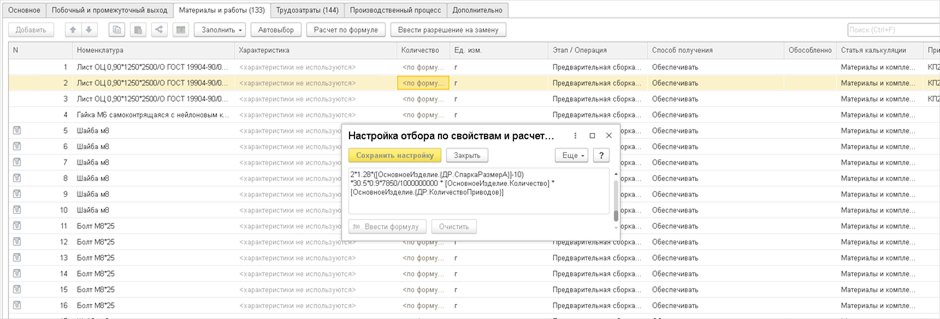 Спецификации переведены в параметрический формат. Теперь вместо отдельных документов под каждую комбинацию — одна спецификация с расчётом на основе выбранных параметров. Это сократило объём с 1,5 млн до 300 и ускорило работу системы. Сохранилась точность расчетов плановой себестоимости и цены реализации.