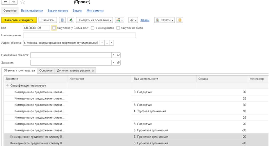 Особое внимание мы уделили объектам строительства: раньше они учитывались через нетиповой справочник, теперь работают как проекты ERP с доработками. Отчёты, фильтры, структура данных перенесены.