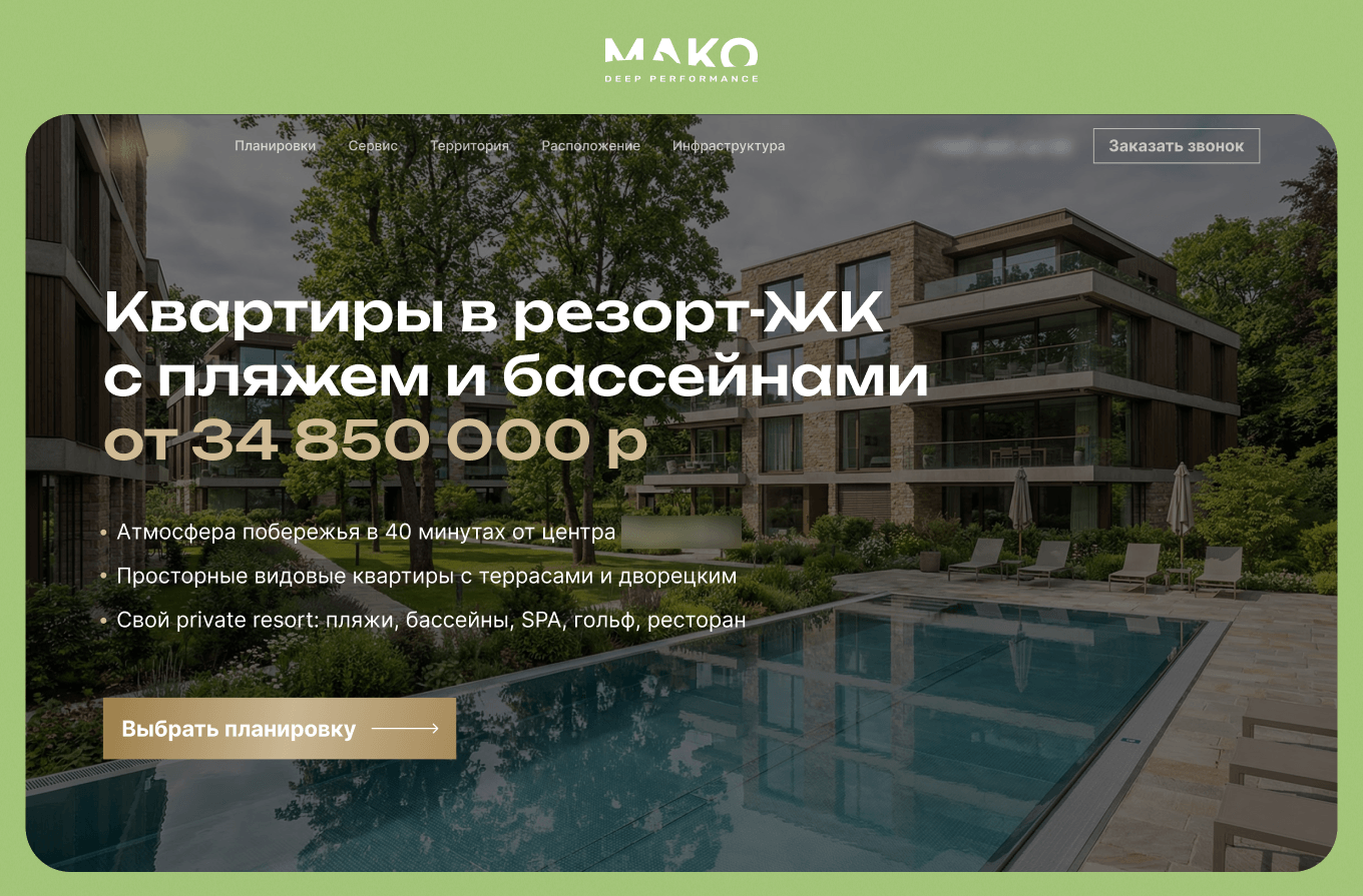 Например, «Зеленых» цепляли таким предложением: «Экологичный ЖК: приватный сервис, пляжи, гольф, школа»