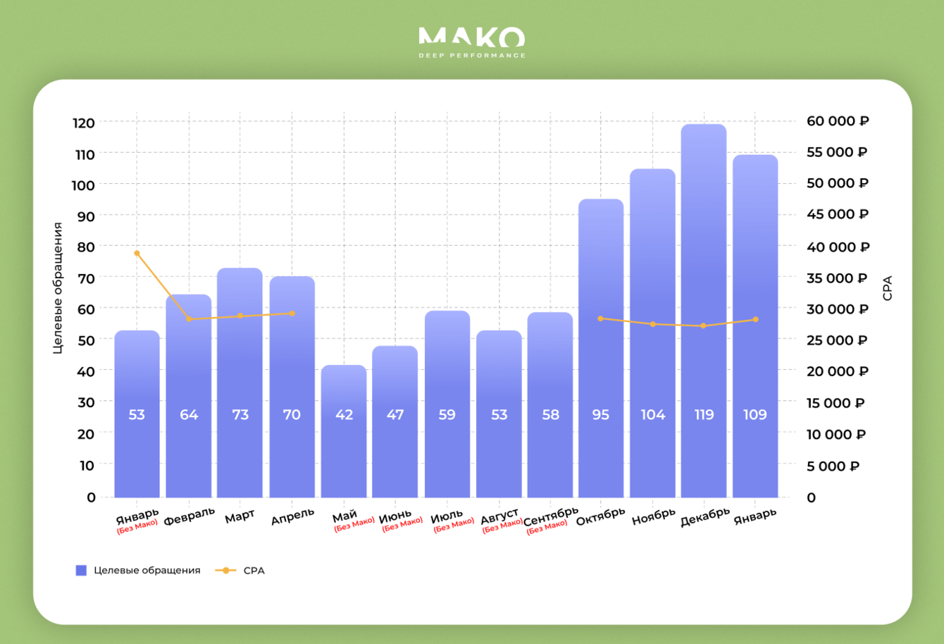 Гипотеза себя оправдала + все маркетинговые изменения дали плоды. В итоге, удалось повысить заявки на 30% от 70 (в апреле) до 95 в октябре по цене 28 102 р.