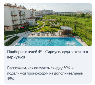 – Продуктовые статьи о преимуществах отелей, подборки с ними.