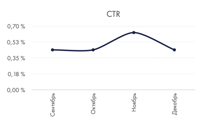 Наибольший CTR наблюдали ноябре, аудиторию привлекали статьи про отдых в бархатный и осенне-зимний сезон, а также про отдых с выгодой в 2024-2025 году.