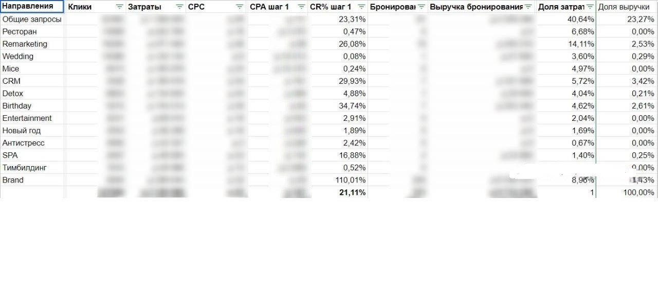 Для снижения доли бронирований по бренду мы постепенно перераспределили бюджет на другие направления, снижая брендовую рекламу.
