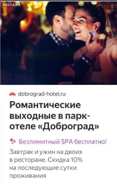 Примером успешной рекламы на другой регион может служить и Нижний Новгород. Несмотря на то, что от Доброграда до Нижнего Новгорода добираться около трех часов на машине, гостей из волжского города в отеле после запуска кампании стало больше.